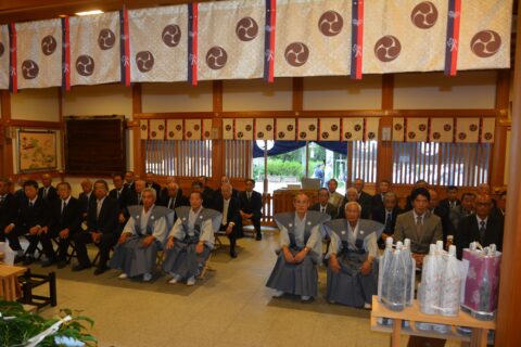 例 祭 DATE:2025年10月5日(日)|CATEGOEY:社務日誌 今年の例祭は地車の試験曳き日と重なったため 午前8時より斎行致しました。 氏子12ヵ町の町会長と責任役員・氏子総代合わせて 47名の参列でした。
